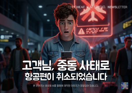 고객님, 중동 사태로 항공편이 취소되었습니다