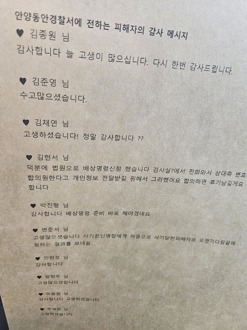감사의 마음을 전하고자 하시는 피해자 여러분들께서는